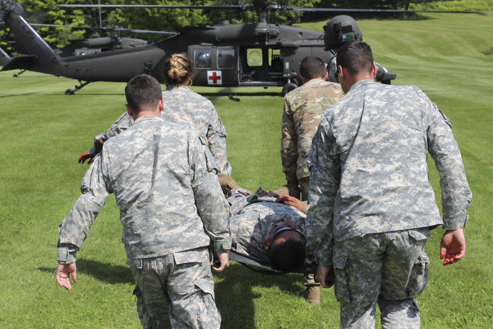 Soldiers from the Vermont Army National Guard and Detachment 1, Golf Company, 1st Battalion, 189th Aviation Regiment, Hawaii National Guard took part in a mass casualty training exercise at Camp Ethan Allen Training Site in Jericho, Vt., Aug. 10, 2017. This was the culminating event for aviation soldiers from Charlie Company, 3rd Battalion, 126th Aviation Regiment (Air Ambulance) to test their medevac exercise during their annual training. They were also joined in previous weeks by Detachment 2, Charlie Company, 1st Battalion, 111th Aviation Regiment, Alabama Army National Guard and Detachment 2, Charlie Company, 3rd Battalion, 126th Aviation Regiment, Connecticut Army National Guard.