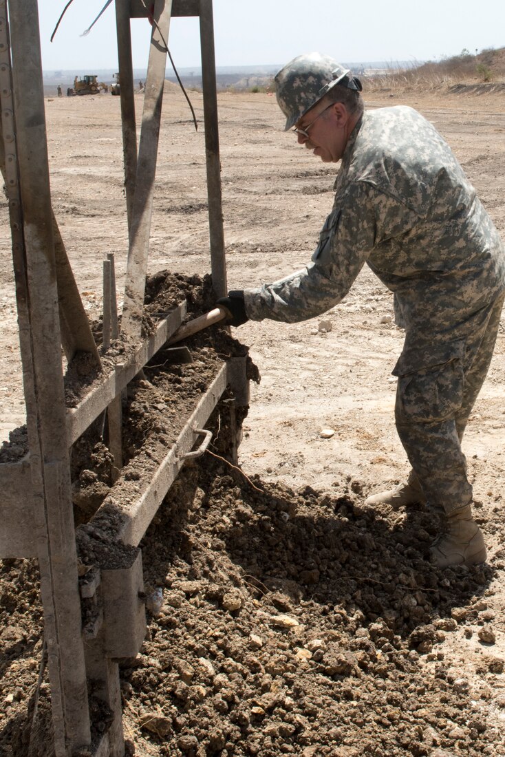 Sgt. John Medenwald, equipment operator, Detachment 1, Garrison Support Command, Vermont National Guard, removes dirt from a target riser during a range renovation, Mount Rolland Training Site, Senegal, April 17, 2018. The range renovations were conducted by the Vermont National Guard and Senegalese Armed Forces engineers because they are state partners in the National Guard Bureau’s State Partnership Program and marks the 10-year anniversary of their teamwork. (U.S. Army National Guard Photograph by Officer Candidate Nathan Rivard)