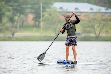 Sgt. 1st Class Mark Jones, infantryman, Army Mountain Warfare School, Vermont National Guard, practices paddle boarding for physical fitness training.