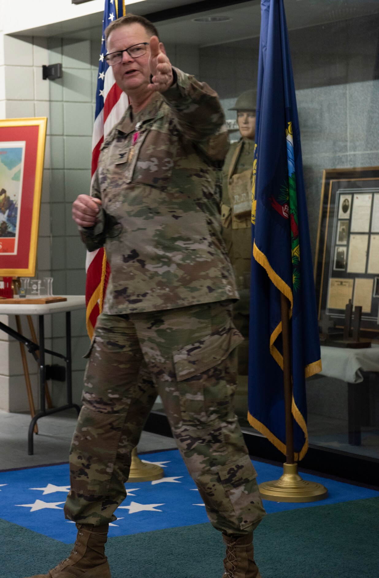 Col. Randall Gates speaks at his retirement ceremony at Camp Johnson, Vermont, on Nov. 30, 2021. Gates, the Vermont National Guard's director of military support, served as an enlisted Soldier for 11 years and a commissioned officer for 27. (U.S. Army National Guard photo by Don Branum)