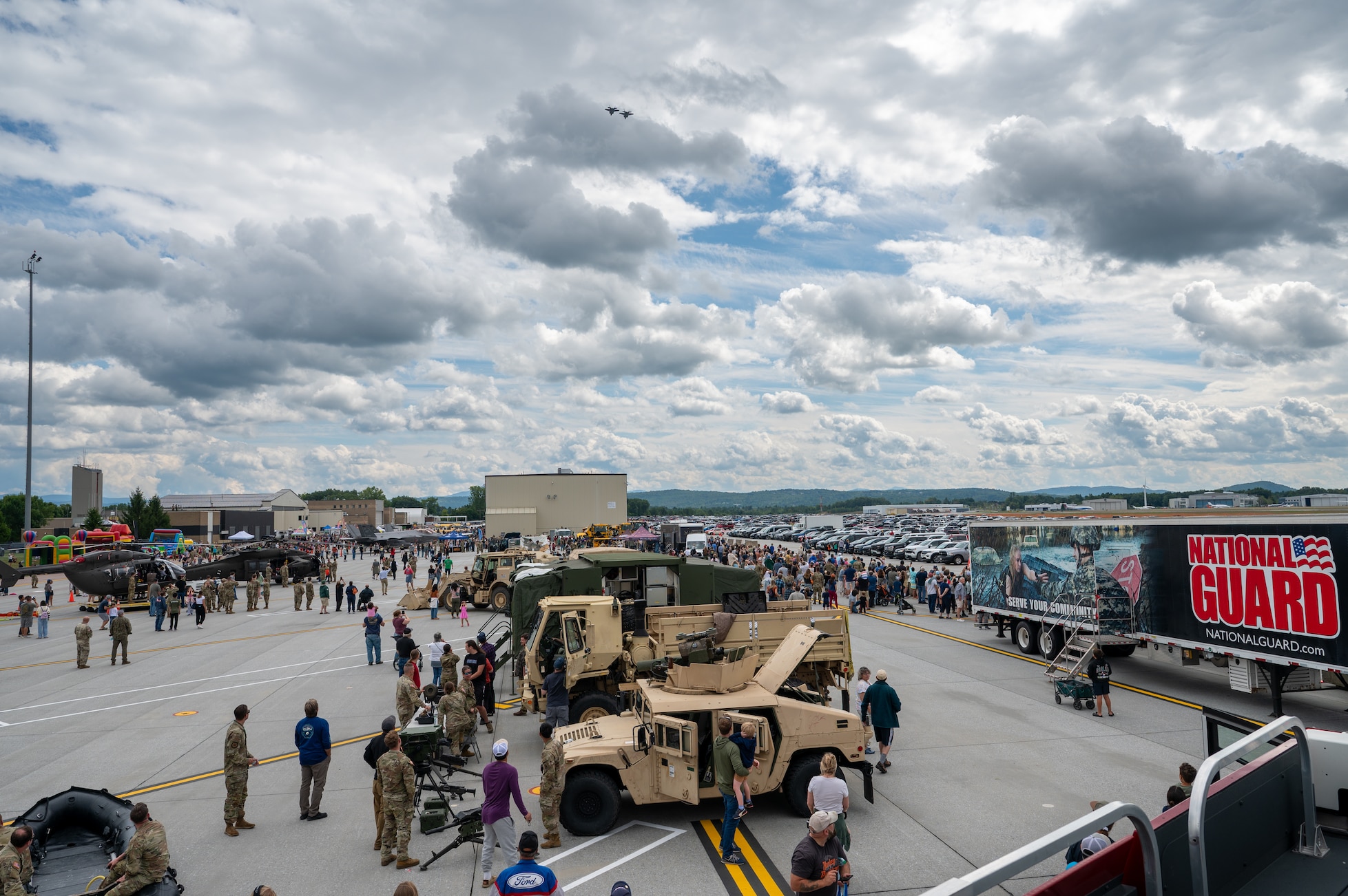More than 6,000 visitors explore the Vermont National Guard Open House at the Vermont Air National Guard Base, South Burlington, Vermont, Sept 7, 2005. This event allows guests to meet National Guardsmen, learn more about military and civilian aviation, watch multiple demonstrations, and enjoy walking through the STEM and job fairs hosted by our community partners. (U.S. Air National Guard photo by Airman Raymond LaChance)